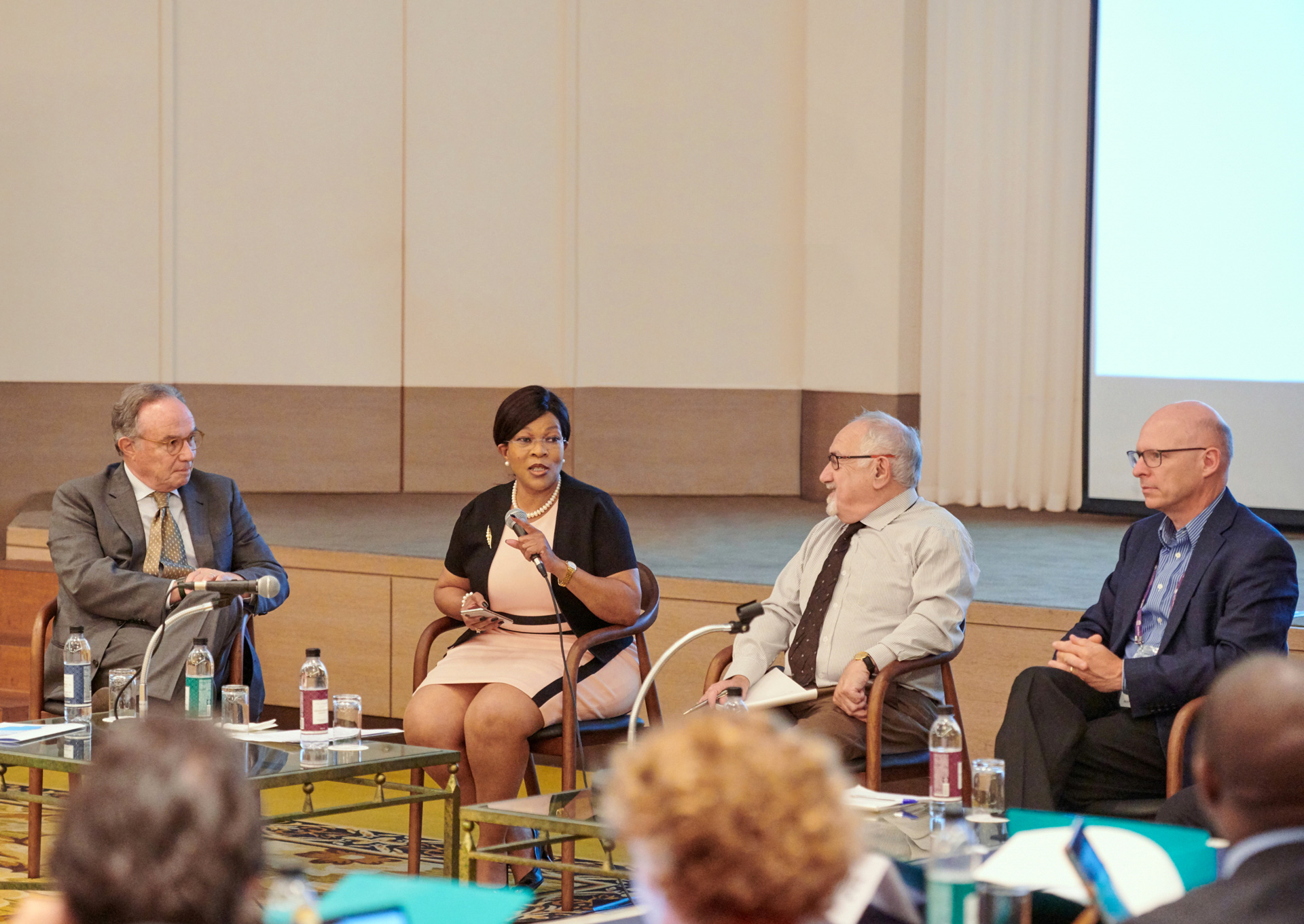IBE Director 2014 – 2020, Mmantsetsa Marope, in dialogue with Pierre Magistretti, Brian Butterworth, and Stanislas Dehaene. High-level Forum on Neuroscience and the Future of Education and Learning, Daegu, 23 September 2019.