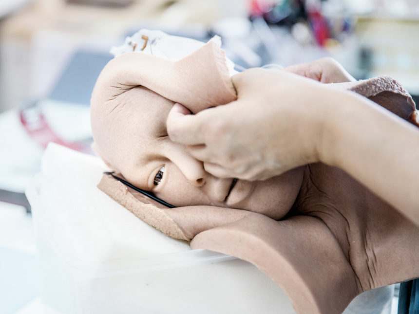 Sophia’s skin is made from from Frubber®, a patented material invented by Hanson Robotics, which mimics the feel and flexibility